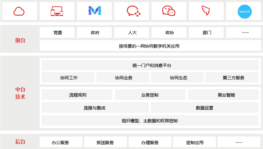 打造橫向到邊、縱向到底的數(shù)字政府統(tǒng)一平臺:建設(shè)集約化、規(guī)范化、智能化、個性化的政務(wù)協(xié)同辦公平臺,全面覆蓋政府多級組織管理、公文管理、會議管理、督查督辦、綜合辦公等日常辦公應(yīng)用;打造創(chuàng)新高效的在線辦公模式:公務(wù)人員全部接入統(tǒng)一的政務(wù)端移動門戶,辦文、辦會、辦事等日常辦公實現(xiàn)“網(wǎng)上辦”、“掌上辦”、 “零時延”;打造“機關(guān)一件事”平臺,機關(guān)內(nèi)部辦事“零跑動”、“不見面審批”:做到一張清單告知、一張表單申報、一個標(biāo)準(zhǔn)受理、一個平臺流轉(zhuǎn)。積極推進多證合一、多圖聯(lián)審、多規(guī)合一、告知承諾、容缺受理、聯(lián)審聯(lián)辦。
