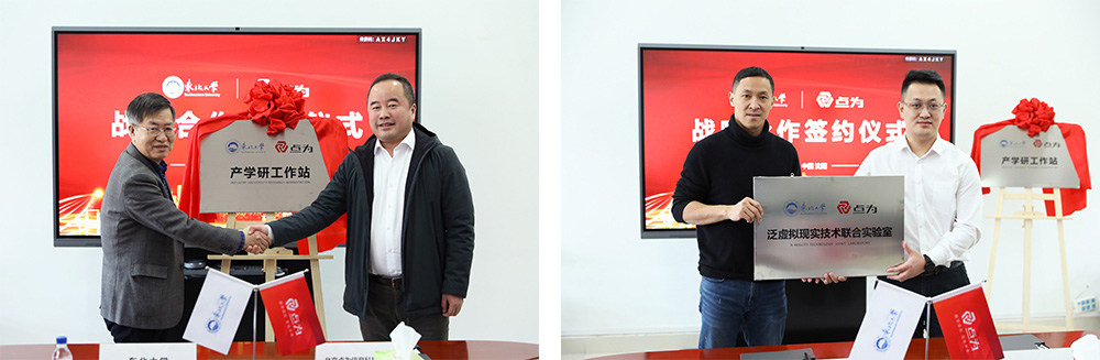 點為公司總裁黃曉東表示,我們始終強調(diào)公司的核心是創(chuàng)新能力和技術能力,這是刻在我們基因里的東西。點為公司和東北大學建立“產(chǎn)學研工作站”、“泛虛擬現(xiàn)實技術聯(lián)合實驗室”不僅是東北大學對于公司創(chuàng)新實力和人才隊伍建設的高度認可,更是對公司多年來對于研發(fā)持續(xù)投入的認同。產(chǎn)學研工作站和聯(lián)合實驗室的建立不僅有利于培育高水平科研團隊、培養(yǎng)創(chuàng)新型人才、推進產(chǎn)學研結合和科技成果轉(zhuǎn)化,更有利于推動虛擬現(xiàn)實產(chǎn)業(yè)的高質(zhì)量發(fā)展。虛擬現(xiàn)實市場大有可為,校企合作前景廣闊,希望此次和東北大學的合作既能夠立足于各自特色,又能夠面向共同的產(chǎn)業(yè)需求;既能夠滿足當前,更能夠面向未來,共同為數(shù)字經(jīng)濟發(fā)展貢獻力量。