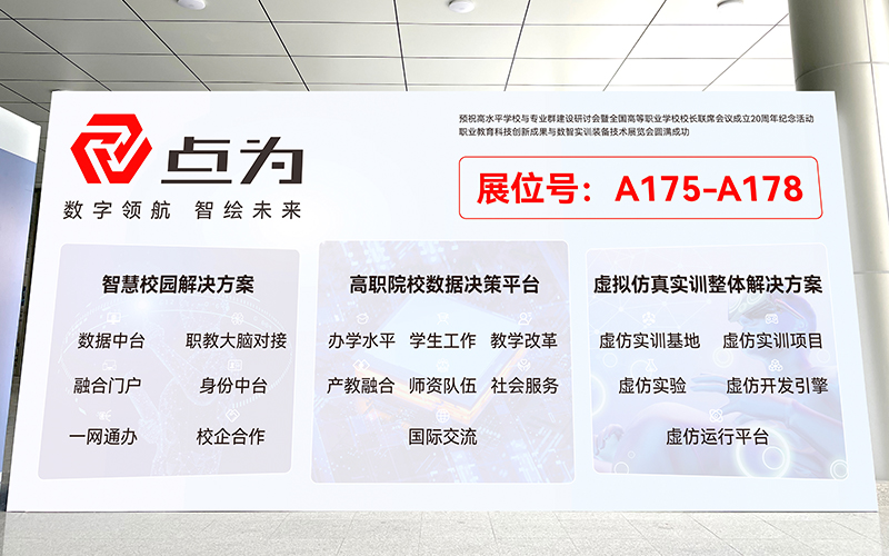 5月21日,為期三天的 “2023職教科技創(chuàng)新成果與數(shù)智實訓(xùn)裝備技術(shù)展覽會” 圓滿落幕,展會同期舉辦了 “高水平學(xué)校與專業(yè)群建設(shè)研討會和全國職業(yè)高等院校校長聯(lián)席會議成立20周年紀(jì)念活動”,點為作為數(shù)字科技優(yōu)秀企業(yè)精彩亮相。